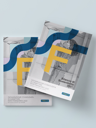 Restyling grafico del Bilancio di sostenibilità 2021 di Fineco Bank